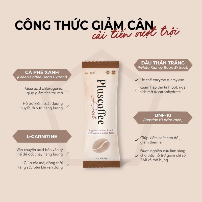 Giảm cân Plus Coffee Diet là dòng cà phê hỗ trợ kiểm soát cân nặng được thiết kế dành cho người bận rộn nhưng vẫn muốn duy trì vóc dáng gọn gàng. Sản phẩm kết hợp hương vị cà phê thơm đậm dễ uống cùng công thức hỗ trợ thúc đẩy quá trình chuyển hóa năng lượng, giúp cơ thể giảm cảm giác thèm ăn và hạn chế tích tụ mỡ thừa. Khi sử dụng đều đặn kết hợp chế độ sinh hoạt hợp lý, Plus Coffee Diet giúp người dùng tỉnh táo hơn, kiểm soát lượng calo nạp vào mỗi ngày và hướng tới cân nặng ổn định một cách tự nhiên. Đây là lựa chọn phù hợp cho những ai muốn giảm cân an toàn nhưng vẫn giữ thói quen thưởng thức cà phê mỗi ngày.