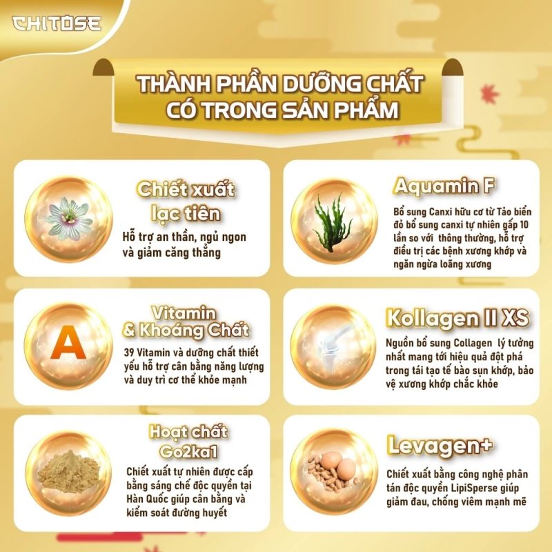 Vitamin D trong sữa Chitose giúp tăng khả năng hấp thu canxi vào xương. Thành phần này hỗ trợ duy trì cấu trúc xương chắc khỏe và giảm nguy cơ loãng xương. Vitamin D còn đóng vai trò quan trọng trong việc nâng cao hệ miễn dịch. Việc bổ sung thông qua sữa giúp cơ thể dễ dàng tiếp nhận hơn. Đây là yếu tố hỗ trợ sức khỏe toàn diện một cách bền vững.